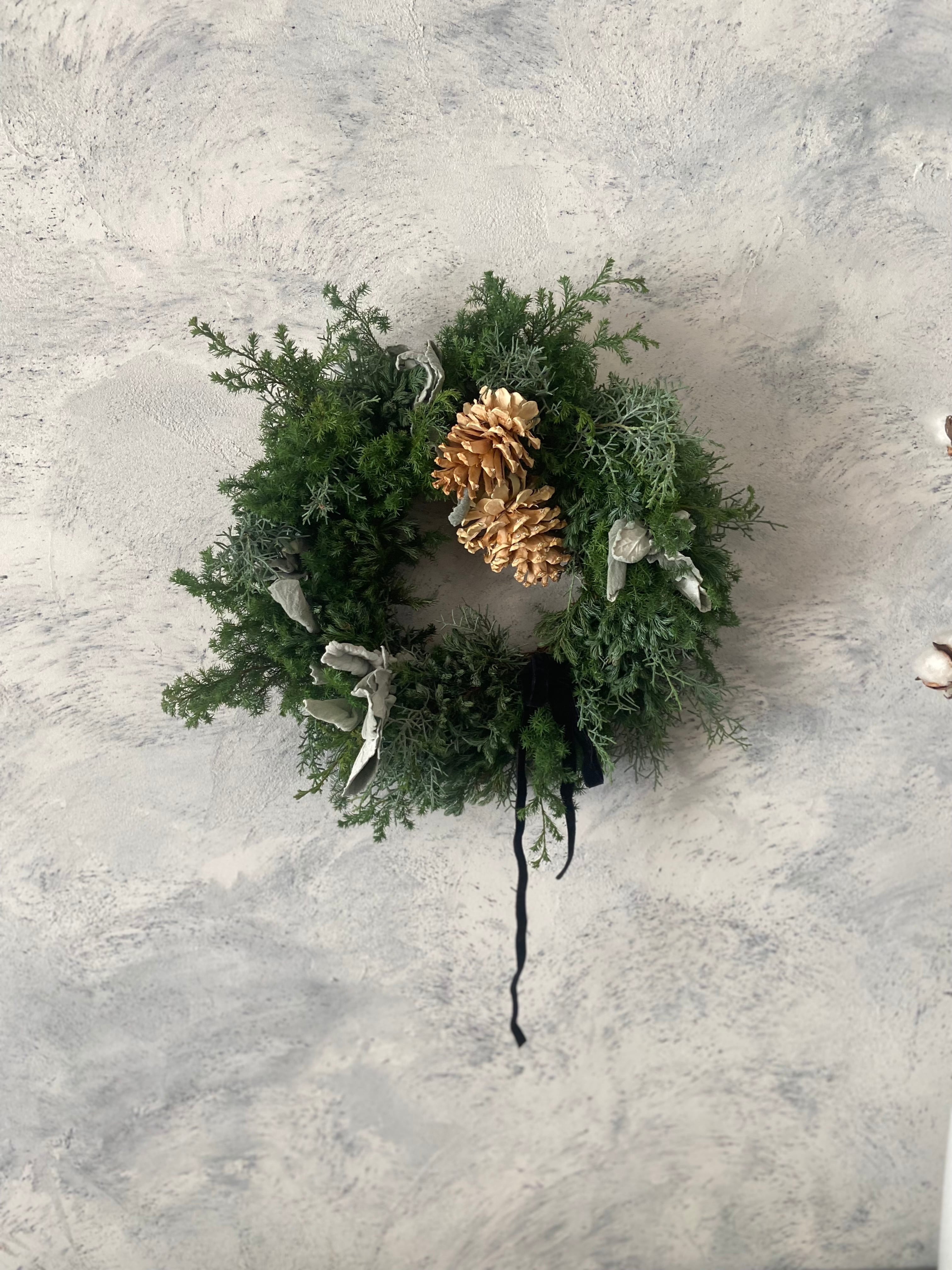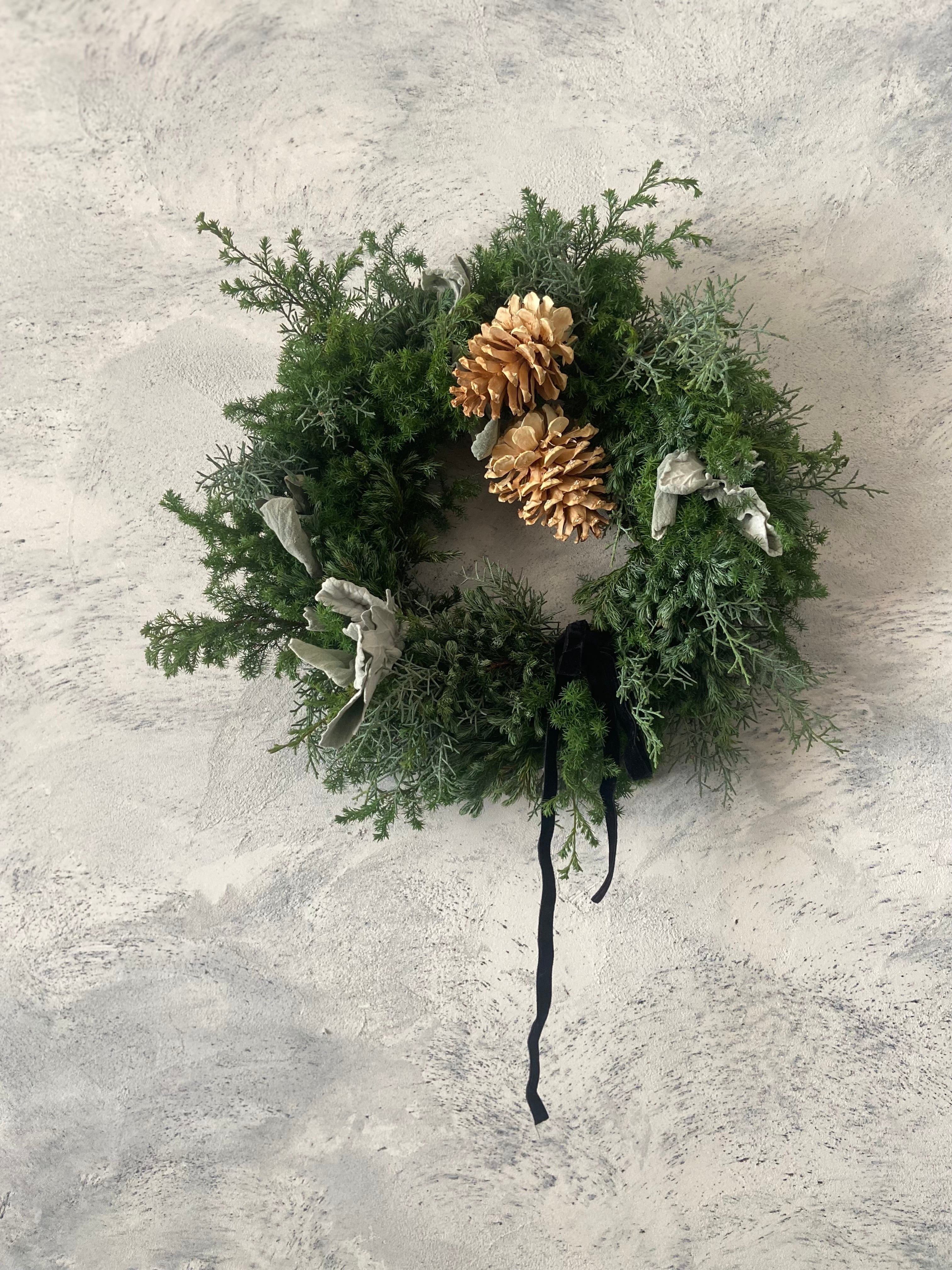 フレッシュな針葉樹をたっぷりのクリスマスリースです。